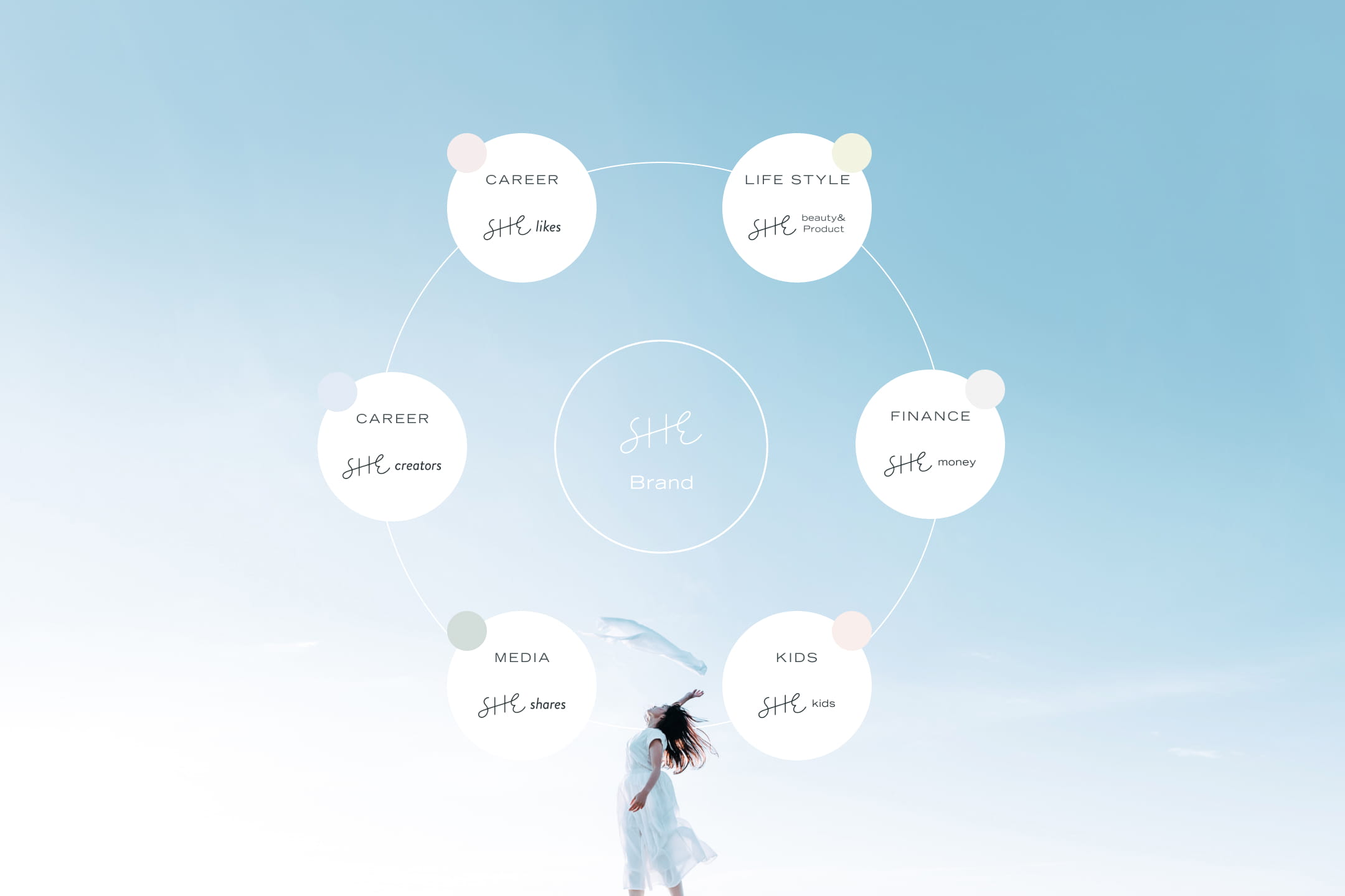 SHEは「ライフコーチングカンパニー」としてライフイベント全般の課題に寄り添うブランドポートフォリオを展開し、個人の”価値観・生き方”の変革を行っていきます。